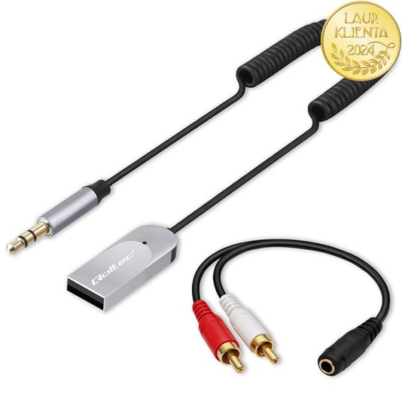 Qoltec Bezprzewodowy adapter odbiornik dźwięku Audio HiFi Home&Car| Bluetooth 6.0 | 2 x RCA | 1 x AUX MiniJack 3.5mm| USB | Mikr