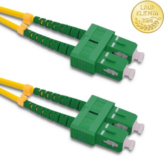 Patchcord optyczny jednomodowy Złącza: SC/APC - SC/APC Standard: G652D Średnica kabla: 3.0 mm Długość kabla: 1 m